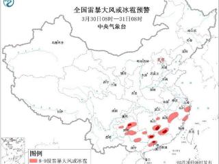中央气象台3月30日06时继续发布强对流天气黄色预警